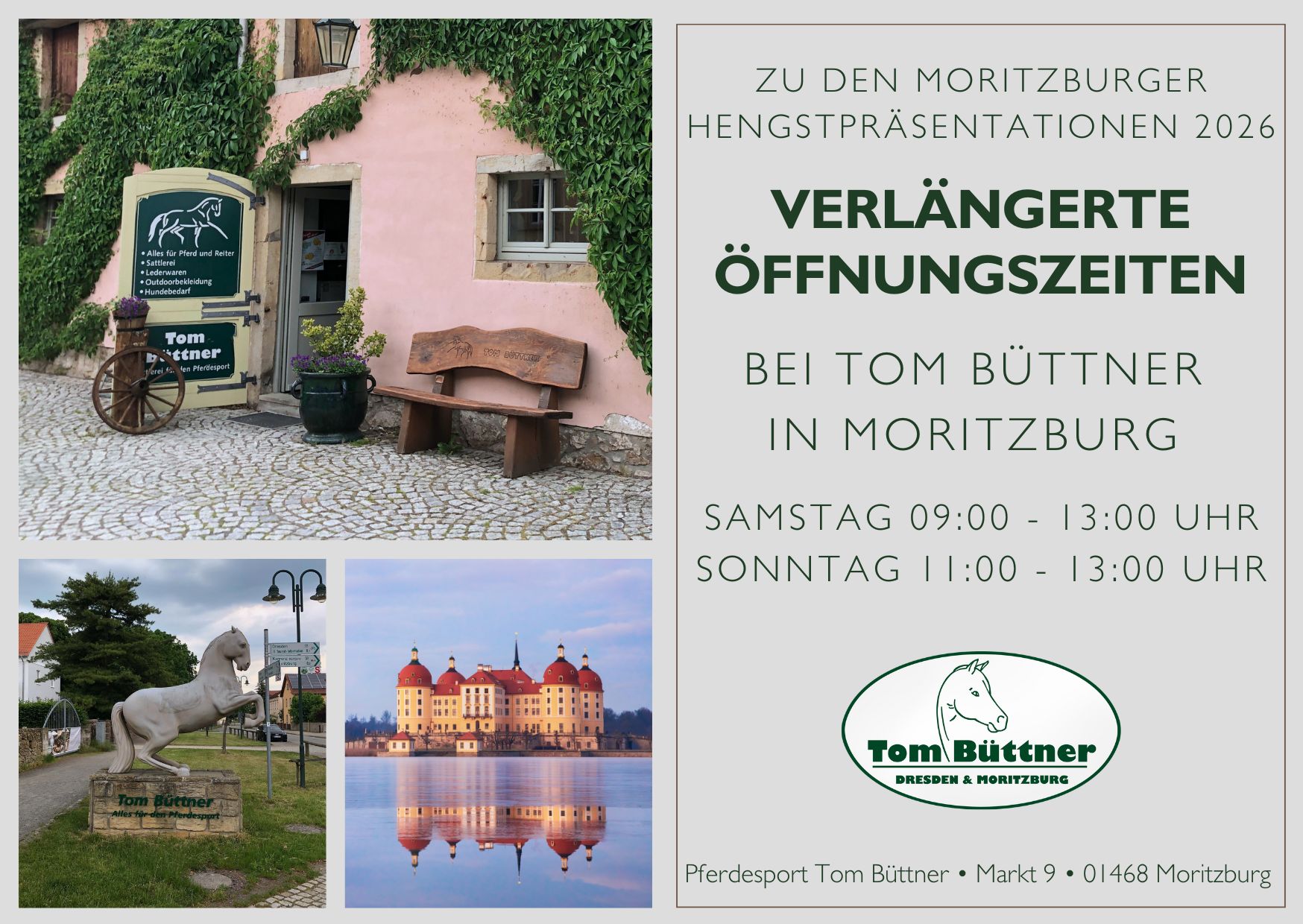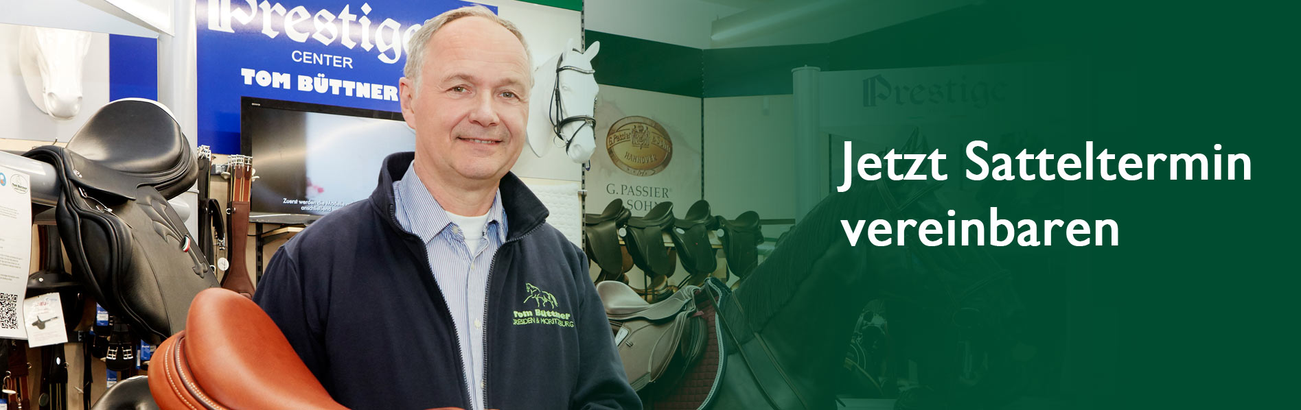 Hochwertiger Pferdesportbedarf für Pferd und Reiter. Hinter Tom Büttner steht ein Team erfahrener Reiter, Fahrer, Verkäufer und Handwerker. Unsere Mitarbeiter sind immer für Sie da, ob im Außendienst direkt bei Ihrem Pferd, in unserer Sattlerei oder im Verkauf. Unsere beiden Geschäfte in Dresden und Moritzburg bieten Ihnen ein umfangreiches Sortiment mit fachgerechter Beratung. Zudem finden Sie aktuelle Angebote rund um die Uhr in unserem Onlineshop. Unsere Sattlerei ist spezialisiert auf die genaue Anpassung Ihres Sattels an den Rücken Ihres Pferdes. Jetzt Termin vereinbaren.