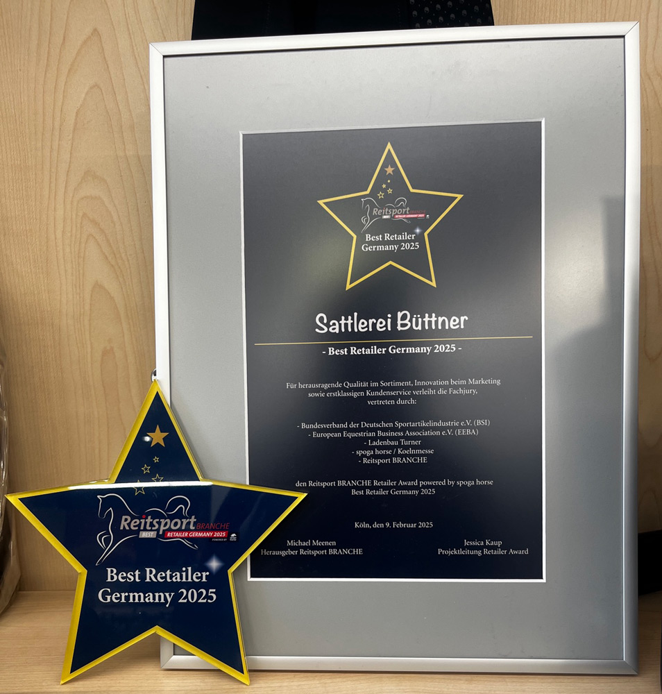 Wir sind überglücklich und stolz, verkünden zu dürfen, dass wir den „Reitsport BRANCHE Retailer Award 2025 powered by spoga horse“ gewonnen haben! Damit wurden wir als bestes Reitsportgeschäft Deutschlands ausgezeichnet – eine unglaubliche Ehre und eine Bestätigung unserer Leidenschaft und unseres Engagements für den Reitsport.