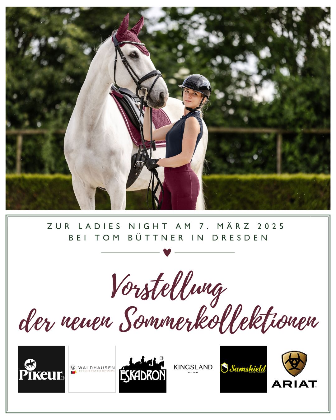 Wir laden euch herzlich zur exklusiven Ladiesnight am 7. März bei Tom Büttner in Dresden ein! Ab 18 Uhr erwarten euch folgende Highlights: