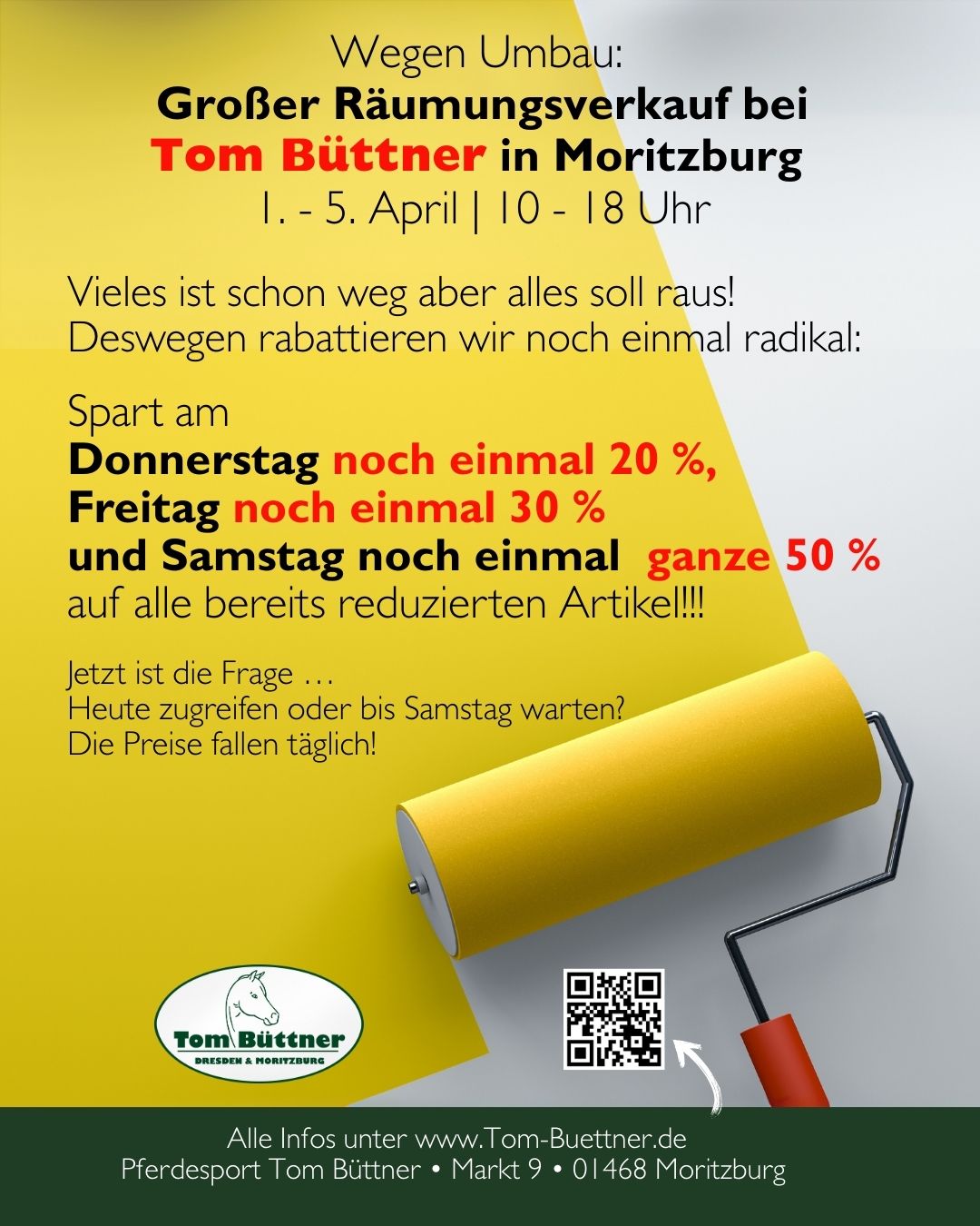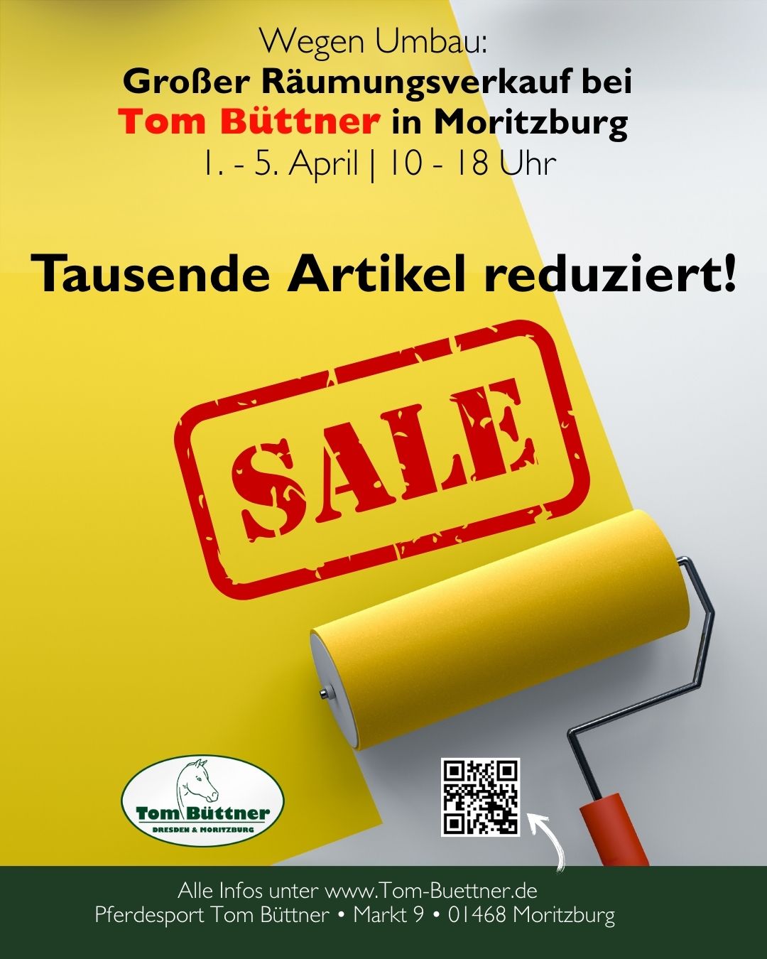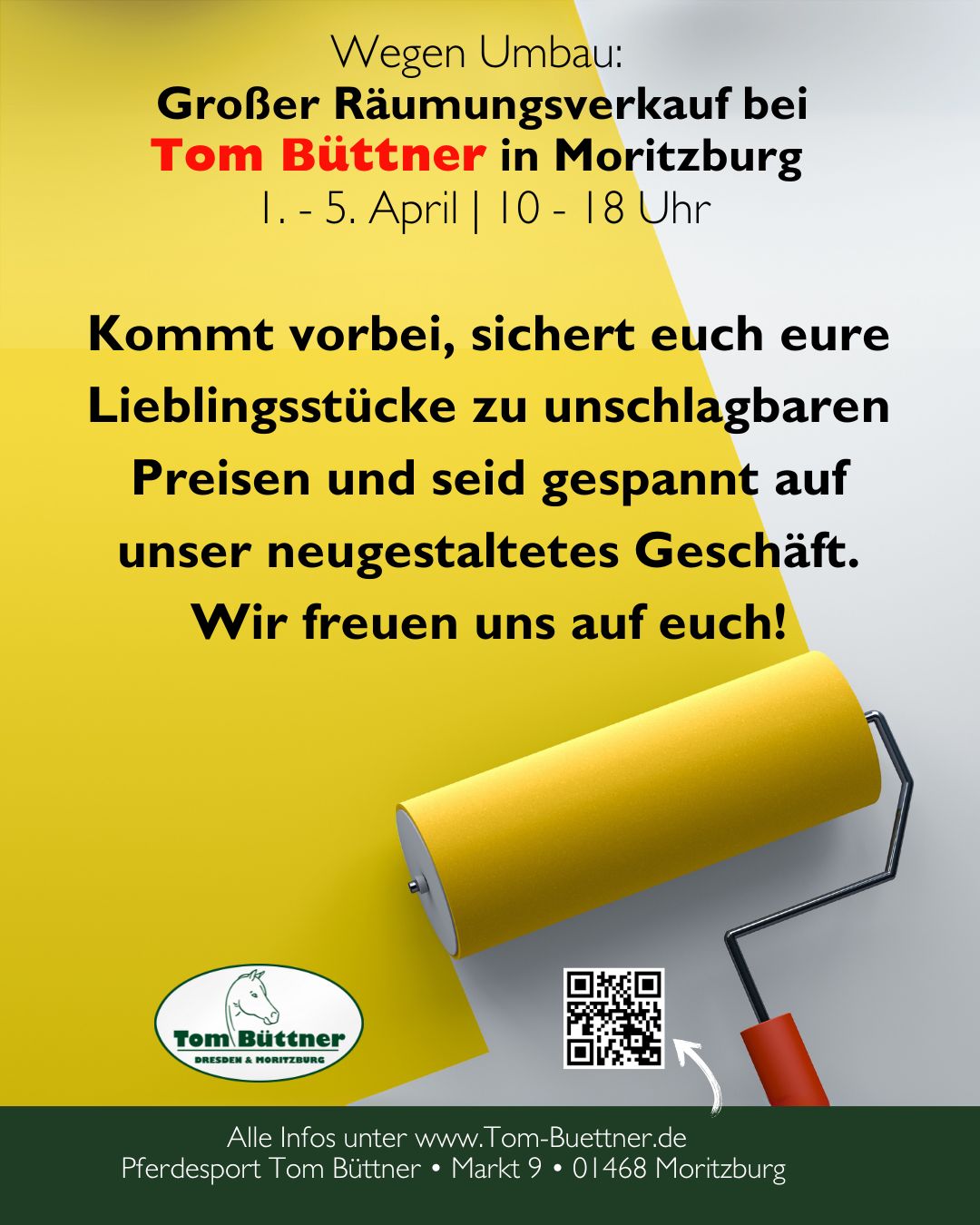 Es tut sich was in unserem Geschäft in Moritzburg! Während wir die Räume neugestalten und modernisieren, habt ihr die perfekte Gelegenheit, echte Schnäppchen zu ergattern. Denn bevor unser frisch renoviertes Geschäft am 9. April wieder für euch öffnet, starten wir unseren großen Räumungsverkauf!