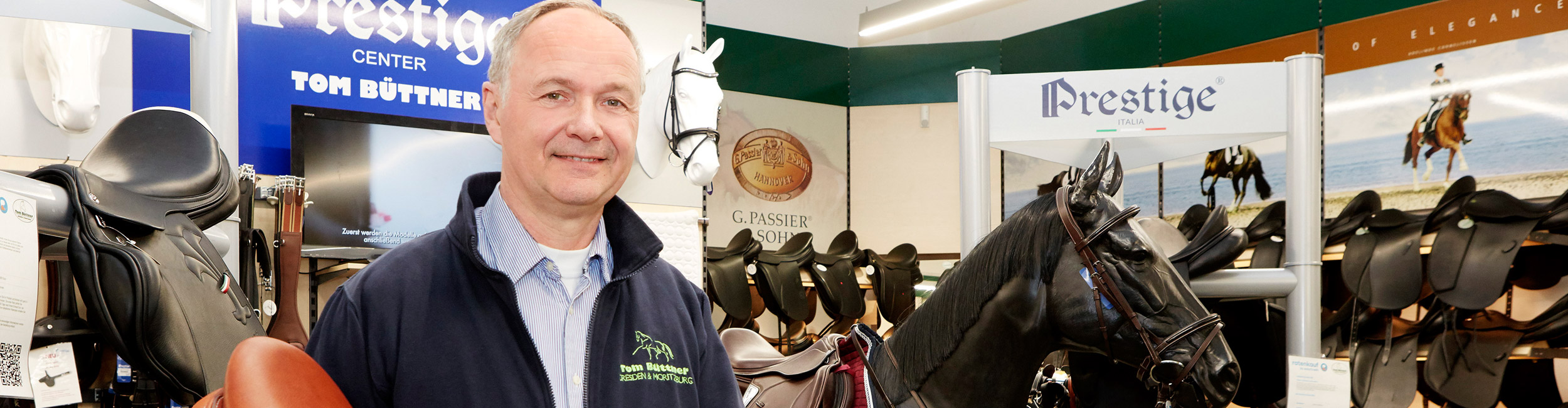 Hochwertiger Pferdesportbedarf für Pferd und Reiter. Hinter Tom Büttner steht ein Team erfahrener Reiter, Fahrer, Verkäufer und Handwerker. Unsere Mitarbeiter sind immer für Sie da, ob im Außendienst direkt bei Ihrem Pferd, in unserer Sattlerei oder im Verkauf. Unsere beiden Geschäfte in Dresden und Moritzburg bieten Ihnen ein umfangreiches Sortiment mit fachgerechter Beratung. Zudem finden Sie aktuelle Angebote rund um die Uhr in unserem Onlineshop. Unsere Sattlerei ist spezialisiert auf die genaue Anpassung Ihres Sattels an den Rücken Ihres Pferdes. Jetzt Termin vereinbaren.